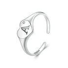 Engraved Initial Letter A Open Ring Heart-shaped Adjustable Stackable Rings